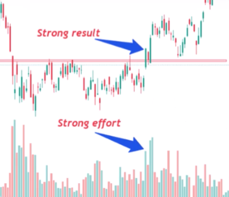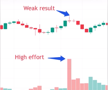 Wyckoff theory suggests suggests a big move should converge with big volume (effort = result)