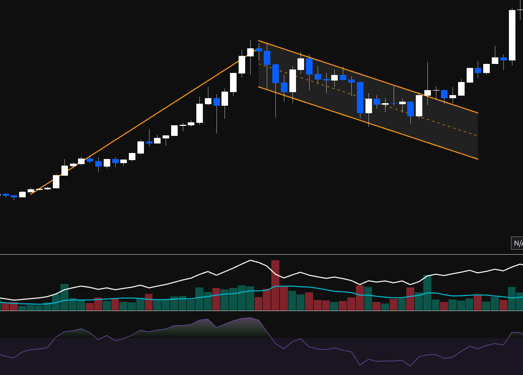 - Higher lows each move