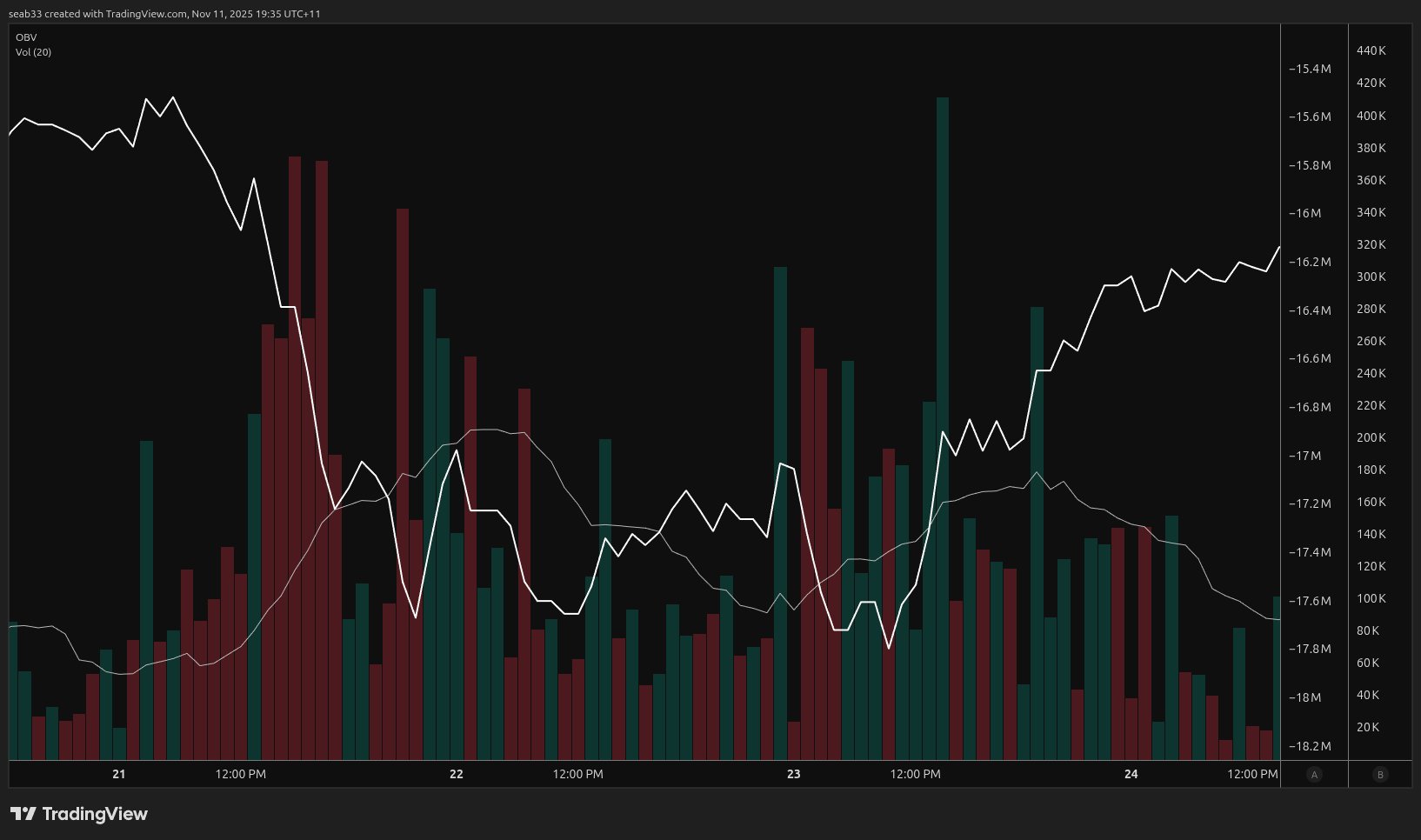 - OBV didn't confirm new low